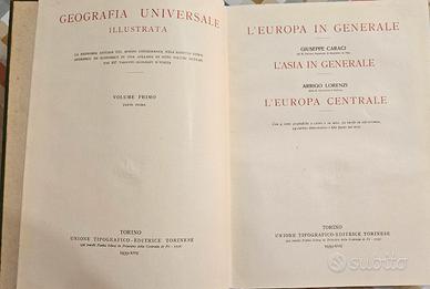 Vendo collana completa Geografia Universale Illustrata edita da UTET (Unione Tipografico-Editrice Torinese) nel 1939-1940 (8volumi). Opera enciclopedica prestigiosa di geografia fisica, antropica ed economica, ricchissima di:centinaia di carte geografiche (molte a colori e ripiegate) illustrazioni, fotografie d’epoca descrizioni dettagliate di continenti, paesi, popolazioni e ambienti Volumi presenti:Europa in generale, Asia in generale, Europa Centrale Europa Occidentale Stati Scandinavi e Baltici, URSS, Terre Polari Asia Anteriore, di Sud-Est e Orientale Americhe, Africa, Oceania e resto del mondo Condizioni: più che buone / quasi ottime per l’età (85 anni). Copertine in tela verde con qualche segno del tempo sui dorsi (normale usura), ma interni puliti, pagine fresche e mappe in ottimo stato (mai piegate male o rovinate).Perfetta per appassionati di geografia storica, cartografia, libri antichi e opere UTET d’epoca. Formato grande, circa 26x20 cm, rilegatura rigida. Prezzo: 115 € trattabili Ritiro a mano a ROMA spedizione a carico acquirente (peso notevole, circa 12-13 kg totali).