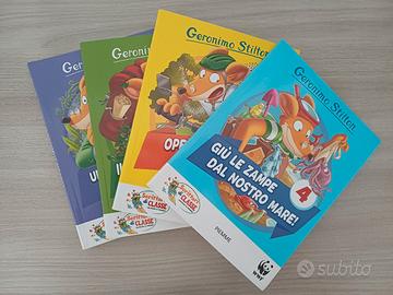 Collana di libri di Geronimo Stilton divisa in 2 cofanetti di 4 volumi. In buone condizioni. Parte dei giochi nelle ultime pagine sono stati completati.