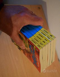 Il n. 1 ha un po’ di piega in basso di copertina. Il n. 5 ha una piega più evidente di 4 cm sulla copertina in alto a destra, con piccola abrasione, come da foto. Il n. 6 ha pure una piega in alto della copertina di cm. 7.