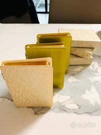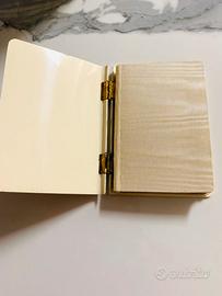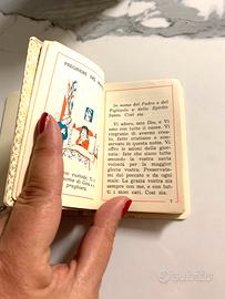 Delizioso libretto di preghiere, con copri copertina in bachelite lucida, leggermente brillantinata. Finemente rilegato, con anelli interni in metallo. Copertina in tessuto lavorato, color avorio. Nuovi, con scatola originale. Di M. L. Perego disegni di Dario Gobbi E. Ferrari - Milano Anno 1957 Nuovi, mai aperti se non per fotografarli. €50 cad