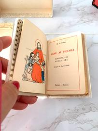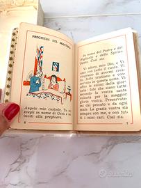 Delizioso manuale di preghiere rivolto ai piu piccoli. Copertina in morbido velluto con immagina sacra in ottone. pagine in filigrana dorata. Moltissime immagini colorate. Completo di sovracopertina trasparente e acatola cartolana. Ottima idea regalo per bimbi. Ne dispongo di una decina, tutti in perfette condizioni, con copertine diverse. Nuovi da cartoleria. cm 12x7 con leggero odore di chiuso €35 con immagina sacra ottone o argento €30 senza immagine