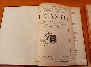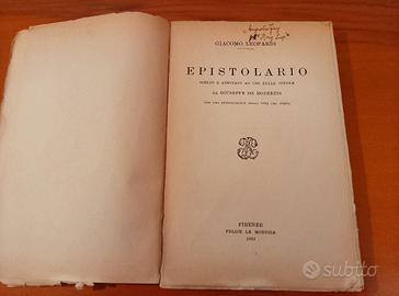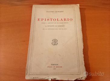 Vendo due libri di Giacomo Leopardi: - Epistolario, edizione Le Monnier del 1933 - I Canti, edizione Carlo Signorelli del 1923 Condizioni sufficienti; è presente qualche appunto, rilegature allentate.