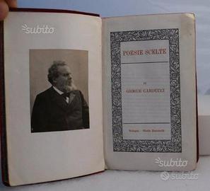 Prima edizione del volume Poesie Scelte di Giosue' Carducci. Così recita la stampa sull'ultima pagina: "FINITO DI STAMPARE IL DI' XX NOVEMBRE MCMIX NELLA TIPOGRAFIA DI PAOLO NERI IN BOLOGNA, SU CARTA FABBRICATA DA CESARE RUGGERI IN CASALECCHIO DI RENO". Formato cm. 9 x 14 Pagine 402 stampate su carta filigrana. Condizioni generali buone, il libro è integro senza pagine che si staccano. Copertina esterna un po' rovinata, ma complessivamente discreta. Costo di spedizione per Raccomandata: 6 Euro