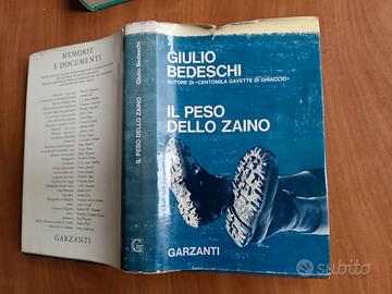 Il peso dello zaino, Ed. Garzanti , prima edizione marzo 1966. Sovraccoperta un po' sbucciata, interno in ottime condizioni tranne per la carta che è ingiallita. A 12,00.