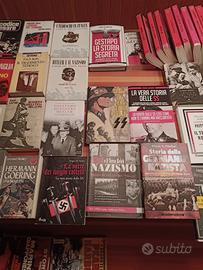 Lotto di 96 libri di storia, saggi, e solo 4 romanzi inerenti la seconda guerra mondiale, in particolare rivolto ad Hitler, alle vicende storiche che lo riguardano, ai suoi generali ed attendenti, Himmler, Goebbels, Priebke, Goering , campi di sterminio, alle atrocità commesse, poi volumi sulla guerra nel deserto, sui medici dei lager, waffen SS, Gestapo, ecc. Tutti i libri sono stati firmati e scritto il nome del precedente proprietario, e vi sono alcuni con piccoli appunti, ma tutti leggibili senza problemi. alcuni sono volumi con anche molte foto d'epoca. Se il lotto sarà venduto occultero' a colpi di bianchetto nome e firma per motivi di privacy. Il tutto a 250,00 euro ai quali aggiungere le spese di spedizione in base al peso. Si accetta anche ritiro in loco, ed eventuali offerte .