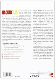 Giunge alla settima edizione un libro universalmente riconosciuto come il testo fondamentale sulla sicurezza delle reti informatiche. Se il concetto alla base del testo non cambia - per catturare un ladro, devi pensare come un ladro - l'intero contenuto è stato rielaborato e integrato con nuovi temi di fondamentale importanza. Trova quindi spazio la descrizione delle minacce APT (Advanced Persisterti Threats), il mondo dell'hacking embedded, l'analisi di exploit e vulnerabilità proprie del mondo mobile. A questo si affiancano gli aggiornamenti su temi già noti e che spaziano dalle criticità legate ai protocolli di comunicazione all'hacking delle moderne applicazioni web e dei database. Infine un nuovo capitolo interamente dedicato alle contromisure. Un libro per chi ha la responsabilità di difendere nazioni, istituzioni, banche, enti, società, infrastrutture, famiglie, persone che affidano o dipendono dalle macchine per il proprio benessere e la sicurezza dei propri dati.