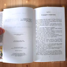 Pezzo da collezione rarissimo, perfetto per completare La saga nelle edizioni originali Salani! Libro 2 di 7 della saga Prima edizione Salani – 2 riSTAMPA 1999 Copertina rigida con Tela Rossa, sovracoperta originale. Vecchia traduzione (quella dei film) Immagini Serena Riglietti Edizione da collezione condizioni: Il volume è in ottime condizioni generali. La sovracopertina presenta alcuni segni di usura sui bordi ed angoli. Pagine bianche e pulite. Edizione sempre più difficile da reperire nelle condizioni originali. ESATTAMENTE COME DA FOTO. 10 Altri titoli disponibili: – Harry Potter e la Pietra Filosofale – Harry Potter e la Camera dei Segreti – Harry Potter e il Prigioniero di Azkaban – Harry Potter e il Calice di Fuoco – harry Potter e l’Ordine della Fenice – Harry Potter e il Principe Mezzosangue - Harry Potter e i Doni della Morte