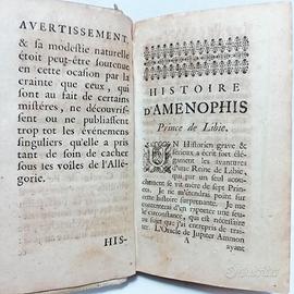 Prima edizione di questa importante opera della letteratura francese di Marie-Luise Fontaines (1660-1730), scrittrice strettamente legata a Voltaire a cui comunicò le sue opere e le dedicò alcuni paragrafi del suo secondo romanzo, La comtesse de Savoie. La Histoire d'Amenophis è il primo romanzo dell'autore, in cui viene raccontata una storia galante.