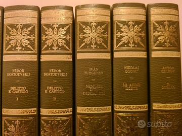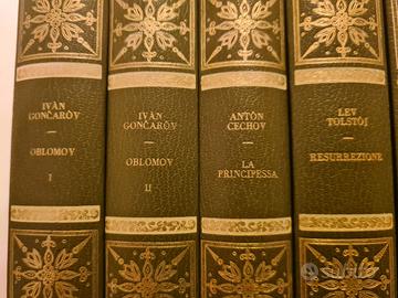 Classici Russi, pubblicata dalla casa editrice Edizioni Ferni. Vendo splendida collezione di 15 volumi dedicata ai grandi maestri della letteratura russa, edita da Edizioni Ferni Ginevra negli anni '70. I libri presentano una raffinata rilegatura editoriale in similpelle verde con fregi dorati sul dorso e sul piatto, e tagli superiori color oro. La collezione è un pezzo d'arredamento oltre che di cultura. Il lotto comprende capolavori come: Dostoevskij: I Fratelli Karamazov (2 vol.), Delitto e Castigo (2 vol.), Umiliati e Offesi. Tolstoj: Resurrezione, I Cosacchi. Gončarov: Oblomov (2 vol.). Gogol’: Le Anime Morte. Čechov: La Principessa, Il Duello. Puškin: La Donna di Picche. Turgenev: Memorie di un Cacciatore.
