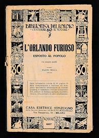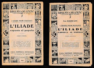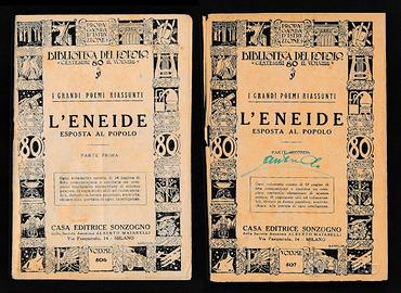 Antiche pubblicazioni anni ’30/’40 “I Grandi Poemi Riassunti” editi da Sonzogno, della collana “Biblioteca del Popolo”: “L’Iliade” (2 volumi – Parte prima del 1937 e parte seconda del 1939 / 63 pagine cad.) / “L’Odissea” (2 volumi – Parte prima del 1937 e parte seconda del 1939 / 63 pagine cad.) / “L’Eneide” (2 volumi – Parte prima del 1940 e parte seconda del 1939 / 63 pagine cad.) / “L’Orlando Furioso” (1 volume - Parte terza del 1941 / 62 pagine). Formato cm 11 x 16,3 circa. Prezzo 6 Euro al volume. I 7 volumi in blocco 35 Euro.