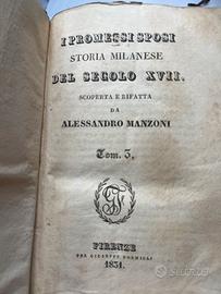 Vendo rarissima edizione fiorentina del capolavoro di Alessandro Manzoni, stampata da Giuseppe Formigli nel 1831, completa in 3 volumi.