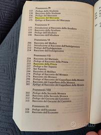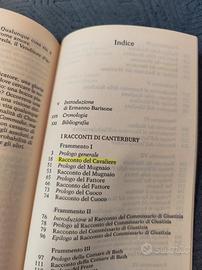 Libro "I raccotni di Canterbury" di Chaucer. Usato in periodo scolastico, in buone condizioni. Non sottolineato, presenta solo 3 segni di evidenziatore nell'indice. Nome scritto a penna sulla prima pagina. Presenta qualche segno di usura sulla copertina.