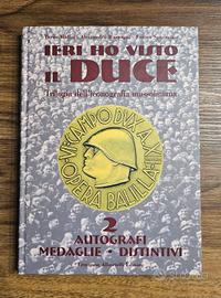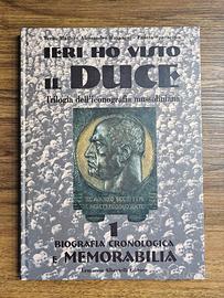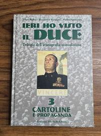 "Ieri ho visto il Duce" è una trilogia dell'iconografia mussoliniana edita da Albertelli (1999), a cura di Maffei, Raspagni e Sparacino, che raccoglie cartoline, propaganda, cimeli e distintivi del fascismo. L'opera illustra l'immagine di Mussolini dalla Marcia su Roma alla RSI e focalizzato su materiale propagandistico. Contenuto:Include cartoline, manifesti, periodici, tessere, francobolli, medaglie e cimeli, con particolare attenzione all'oggettività caratterizzata dall'effige. Autori:Terzo Maffei, Alessandro Raspagni, Fausto Sparacino. Editore:Ermanno Albertelli Editore, Parma (1999). Opera completa così composta: Volume 1 "Biografia, cronologia e memorabilia"; Volume 2 "Autografi, medaglie, distintivi" Volume 3 "Cartoline e propaganda". L'opera è rivolta a collezionisti e studiosi di iconografia fascista