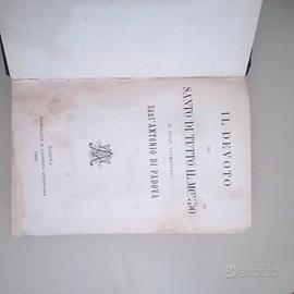 Libro antico, stampato nel 1895: Il Devoto del santo di Tutto il Mondo-il gran taumaturgo Sant'Antonio da Padova. Edizioni Tipografia e Libreria Antoniana. Perfettamente integro, le pagine sono a tratti macchiate dal tempo, come si vede dalle foto, ma la rilegatura è sana e non manca di niente. Una rarità per collezionisti e devoti.