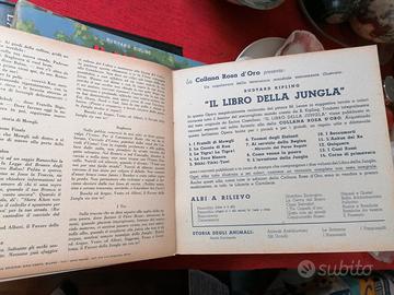 La casa editrice COLLANA ROSA D'ORO, negli anni 50, ha presentato questo capolavoro mondiale della letteratura, interamente illustrato dal pittore M .Leone e tradotto integralmente dal testo originale da Enrica Castellani .Il libro della giungla è stato realizzato in formato Albo.