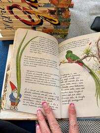 Enciclopedia illustrata vintage anni ’80/’90, ricca di immagini colorate e contenuti sul mondo degli gnomi e della natura.