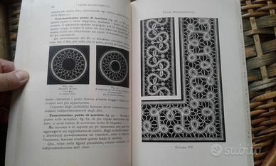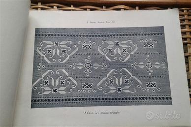 Con 12 tavole di lavori da eseguirsi a punto antico (motivi per centrotavola, cuscini, tovaglie, copricomodino ecc.)