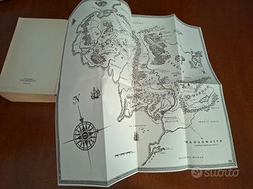 libro signore degli anelli ( la compagnia dell'anello, le due torri, il ritorno del re ) con mappa integrata del mondo della terra di mezzo.