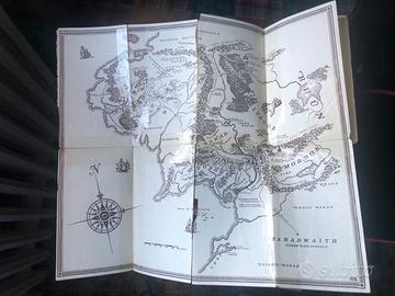 Copertina usurata sia sul fronte che sul retro come da foto, mentre le singole pagine sono integre ed in buone condizioni. La mappa della Terra di Mezzo è presente ma è stata riparata con del nastro adesivo dal precedente proprietario.