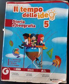 Storia e Geografia 5. Copertina riattaccata, poche evidenziazioni, molti esercizi svolti tutti a matita, pochissime scritte a biro