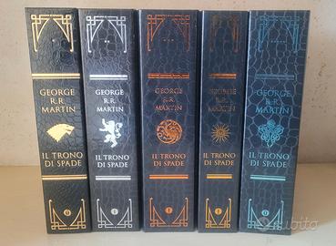 Vendo i primi 5 volumi delle Cronache del Ghiaccio e del Fuoco, saga da cui è tratta la serie Il Trono di Spade. I volumi fanno parte dell'edizione deluxe limitata Mondadori.
