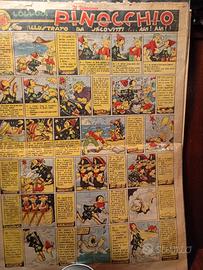 Numero del settimanale de "il Vittorioso" 11 maggio 1947, retrocopertina, prima puntata del Pinocchio di Jacovitti (come in foto) scena sulla riva del mare e la zuffa tra gli scolari con lancio dei libri di scuola.