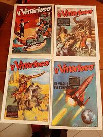 In vendita lotto di 25 Albi “Il Vittorioso” ristampati in supplemento al quotidiano “L’Avvenire” nel 1994. Si dettaglia. 1950: numeri 43-44-45-46-47-48-49-50-51-52-53. 1951: numeri 1-2-3-4-7-8-12-24-26-27-28-29-32 (2). Jacovitti- Caesar. Condizioni di conservazione: ottimi senza mancanze, scritte o strappi. Confrontare corredo fotografico che fa fede ai fini della offerta. Spedizione piego di libri raccomandata