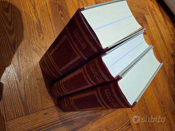 Vocabolario Treccani, nuova edizione in 3 volumi: composto di Il Treccani - Grammatica – Thesaurus. Rilegati similpelle con fregi oro e custodia cartonata. Condizioni perfetta internamente e esternamente. Volumi da collezione, mai aperti o usati.