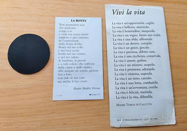 Due immagini raffiguranti Madre Teresa di Calcutta (un santino ed una più grande), nonché un magnete circolare.