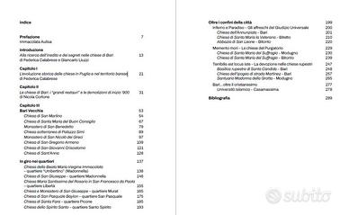 Itinerario tra chiese e luoghi di culto presenti nel territorio di Bari: dalla città vecchia ai quartieri, dalla campagna ai comuni periferici, dalle più antiche alle contemporanee. Storie e leggende, architettura e opere d’arte, nel volume gli autori descrivono 24 luoghi di culto focalizzandosi principalmente sulle informazioni e gli aspetti meno noti. Ogni chiesa è un libro aperto che, se saputo leggere, ci racconta molto di più di quanto possiamo immaginare. Con questo volume gli autori vogliono restituire a Bari, e a tutti coloro che amano questa città, il valore inestimabile di questi luoghi. Perché, come viene evidenziato, il più delle volte sono proprio i luoghi maggiormente dimenticati e nascosti a custodire le storie più affascinanti e significative. Visitare queste chiese è un invito a scoprire storie inedite, a immergersi in un’atmosfera di calma, contemplazione e bellezza. Esse sono testimoni di un patrimonio culturale che racconta la complessità e la ricchezza della storia cittadina. Con le loro storie, le loro leggende e tradizioni, le chiese di Bari regalano, a chi le visita, un’esperienza autentica, lontana dal trambusto e dalle masse turistiche. In questi luoghi rinasce la sacralità del quotidiano, un richiamo all’essenza più profonda della città e alla sua anima viva e pulsante.