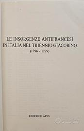 NUOVO: "Le insorgenze antifrancesi in Italia nel triennio giacobino (1796-1799)" di Autori vari. Editrice APES 1992 - 387 pagine. Segnalo soltanto la quarta di copertina piegata leggermente in alto a sinistra. Vendita da privato, no garanzia.