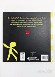 Affascinante albo illustrato "Io" (titolo originale Yo) di Menena Cottin, edito da Gallucci nel 2011. Un libro dal design minimalista e raffinato che, con semplicità e poesia, racconta il formarsi dell'individualità. Attraverso illustrazioni essenziali su fondo nero e giallo, spiega ai bambini (dai 3 ai 99 anni) cosa significa essere diversi ma non unici. Copertina rigida, edizione ecosostenibile.