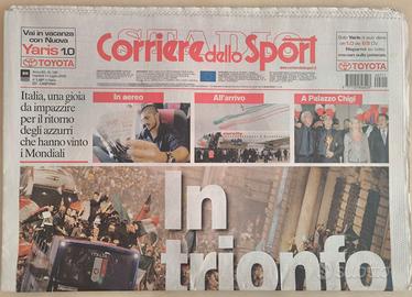OCCASIONISSIMA VEMDO LOTTO DI 5 NUMERI DEL TRIONFO ITALIANO DEL 2006. LA GAZZETTA DELLO SPOORT ED IL CORRIERE DELLO SPORT DEL 10 - 11 LUGLIO 2006 E IL TOTOGUIDA SCOMMESSE DEL 11 LUGLIO 2006