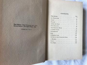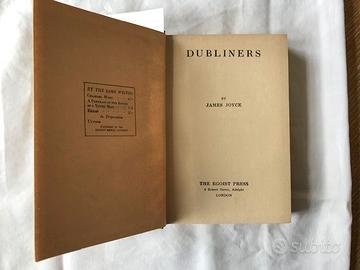James Joyce, Dubliners, The Egoist Press 1922. 2° Edizione 8vo cm 13 x 19. In Inglese. Copertina rigida originale rivestita in tela verde scuro. Sul risguardo anteriore dedica a matita al precedente proprietario. Blocco delle pagine pulito e legatura salda. Dorso sbeccato in alto e sfilacciato in basso. Ai piatti della copertina veramente poche piccole fitte, scheggiature e macchie . Punta dei piatti appena usurata. Nel complesso un buon libro compatto e in molto buone condizioni considerata l'età.