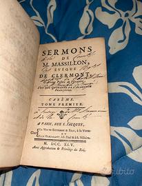 Volume settecentesco dei Sermoni di Quaresima di Massillon, predicatore del Re.