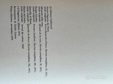 📚 Jean Genet — 4 Romanzi e Diario del Ladro Prima Edizione 1975 | Il Saggiatore | A cura di Giorgio Caproni Descrizione: Vendo raro volume Jean Genet – 4 Romanzi e Diario del Ladro, edito da Il Saggiatore nel novembre 1975, prima edizione italiana a cura di Giorgio Caproni. Rilegato, completo di sovracoperta originale illustrata da Guido Carrer. Il volume comprende: ✔ Nostra Signora dei Fiori ✔ Miracolo della Rosa ✔ Querelle de Brest ✔ Rosa dei Venti ✔ Diario del Ladro ⸻ Condizioni: Buone condizioni generali. Naturali bruniture delle pagine dovute al tempo, come da tipica carta editoriale dell’epoca. Perché acquistarlo: 🔹 Prima edizione ricercata 🔹 A cura di Giorgio Caproni 🔹 Sovracoperta di Guido Carrer 🔹 Ottimo per amanti di Genet, della letteratura francese o collezionisti di Il Saggiatore ⸻ 📩 Contattami senza impegno per altre foto o dettagli. Libro vintage raro 4 Romanzi e diario del ladro, di Jean Genet edito da Il Saggiatore. A cura di Giorgio Caproni. Prima edizione novembre 1975. Rilegato, con sovracoperta di Guido Carrer. Pagine: 549 Naturali imbruniture del tempo.