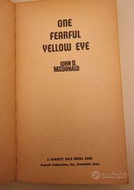 Paperback originale “One Fearful Yellow Eye” di John D. MacDonald, uno dei più noti romanzi della serie con protagonista Travis McGee, figura centrale del crime e hard-boiled americano del Novecento.