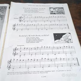 Kinder-Lieder Album, M. P. Heller, Für Klavier, Zeichnungen von Paul Telemann. Dorso rovinato come da foto. Leggeri segni a matita.