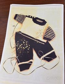 Fotocopie del libro vintage con illustrazioni a colori di progetti da fare con le macchine a filati grossi.