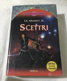 Le cronache di Corus: - Il talento di Alucius - Tenebre. - Scettri Il talento di Alucius Dopo un disastroso cataclisma che ha distrutto la civiltà ponendo fine all'età dell'oro, Corus è un mondo diviso, dove gli umani, gli animali e misteriose creature soprannaturali si combattono senza tregua. Benché la magia sia ormai stata dimenticata da secoli, non è del tutto scomparsa: un gruppo ristretto di persone, infatti, è ancora in grado di praticarla. Fin da bambino, Alicius ha mostrato una straordinaria predisposizione per le arti magiche; tuttavia, gli è stato imposto di non rivelare il suo Talento per paura che altri lo sfruttino indebitamente. Una volta cresciuto, il giovane dovrebbe seguire le orme del padre ed arruolarsi nella Milizia, ma quando l'orda degli schiavi al servizio del Matrial invade il paese, Alicius per magia viene catturato Tenebre. Arruolatosi nella Milizia, Alucius è stato però catturato e reso schiavo dai soldati al servizio della Matride. Corus, dopo la caduta della sua antica civilta fondata sull'esercizio di magici poteri, è ridotta a una sorta di puzzle le cui varie tessere sono state confuse e rimescolate. Un aspirante conquistatore è riuscito in qualche modo a risvegliare leggendarie creature affinché queste lo assistano nel suo tentativo di riunire sotto il suo dominio tutte le terre di Corus. Il popolo delle Valli del Ferro è chiamato ad allearsi con il Signore-Protettore di Lanachrona e la Ventunesima Compagnia deve schierarsi contro il nemico. Scettri In "Scettri", mentre Alucius e la sua amata Wendra vivono trepidanti l'attesa del loro primo erede, il paese è invaso dalle forze nemiche. Comprensibilmente restio a lasciare la pace domestica, Alucius guiderà l'esercito alleato per domare una rivolta di matrice religiosa, per neutralizzare le antiche e potentissime armi nelle mani dei seguaci della Matride e per affrontare un'ulteriore insidiosa forza diabolica che mira a dominare il mondo di Corus.