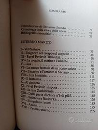 Un marito, una moglie, un amante: il classico triangolo al centro di tanta letteratura del passato e del presente costituisce il punto di partenza (e d'arrivo) dell'«Eterno marito». L'Ottocento letterario fu il secolo per eccellenza dell'adulterio, il rapporto coniugale borghese venne sottoposto a una sorta di costante radiografia, per individuarne la struttura e i meccanismi: da «Madame Bovary» ad «Anna Karenina», passando per «La sonata a Kreutzer» e la «Tragedia fiorentina», le pieghe più riposte della relazione fra i tre vertici in questione furono messe a nudo e offerte all'occhio, perlopiù avido e curioso, del lettore. Naturalmente Dostoevskij non poté fare a meno di dire la sua al riguardo, e di dirla secondo il suo solito, ovvero attraverso l'annientamento del canone e il rovesciamento degli schemi precostituiti. Il risultato sta in questo romanzo breve stranamente compatto per la scrittura dostoevskiana, con pochi personaggi e pochissime linee narrative minori, capace tuttavia di andare oltre la banalità del soggetto e arrivare a soluzioni forse impreviste dallo scrittore stesso, sicuramente imprevedibili per il suo pubblico. Arricchisce il volume "La moglie di un altro e il marito sotto il letto", un divertissement composto secondo i ritmi e le gag del vaudeville e con una struttura teatrale, in cui seppure la figura del marito cornuto rispetti i canoni in voga nell'Ottocento, la presenza del male nel mondo e il suo costante tentativo di "sporcare" e violare l'innocenza si manifestano con forza.