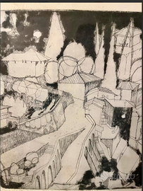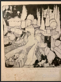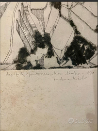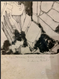 ARTICOLO RARO: PREGIATA ACQUAFORTE e PUNTASECCA opera d'arte grafica antica, nello specifico un'incisione originale del 1970. Si tratta di una "PROVA d'AUTORE", una stampa tirata prima dell'edizione numerata definitiva e destinata all'artista Ludovica MICOLI. CONDIZIONI: ottimo stato conservativo ma essendo un articolo antico/vintage può presentare i lievi segni del tempo che ne attestano l'originalità e il fascino. Proveniente da collezione privata Villa Veneta del '900. MISURE: L42xh57xp2cm c.a. DETTAGLI: Quest'opera è un'acquaforte e puntasecca, tecniche calcografiche in cui l'immagine viene incisa su una lastra metallica