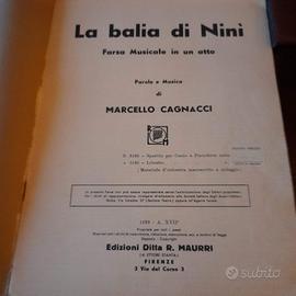 Spartito canto pianoforte La balia di Ninì farsa musicale in un atto di Marcello Cagnacci. Edizioni Ditta R. Maurri Firenze anno 1939. Usato in buone condizioni.