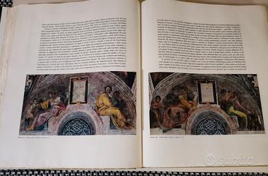 "La cappella Sistina in Vaticano" di Roberto Salvini , Rizzoli, edizione originale del 1965.Due volumi, rilegati in tela con copertina rigida plastificata e cofanetto.Con 269 illustrazioni applicate e 54 a piena e doppia pagina a colori. Il cofanetto è abbastanza pesante, e misura 34,5 x 41,5. Due volumi rari nelle condizioni in cui si trovano.