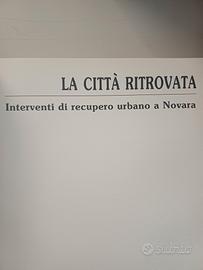 Interventi di recupero urbano a Novara. Il testo analizza le trasformazioni del centro storico e delle periferie, includendo riferimenti a importanti architetti come Alessandro Antonelli, noto per la Cupola di San Gaudenzio che si intravede nella foto aerea di copertina.
