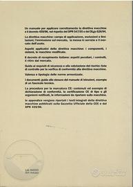 La Direttiva Macchine La guida ufficiale UCIMU (Associazione Costruttori Macchine Utensili) Il volume chiarisce gli obblighi introdotti dalla nuova direttiva 2006/42/CE: analizza i requisiti di sicurezza richiesti alle macchine, descrive le procedure per la marcatura CE e illustra la documentazione che deve essere predisposta (fascicolo tecnico, manuale di istruzioni, dichiarazione CE di conformità, ecc.) Dettagli prodotto: A cura di: UCIMU-Sistemi per produrre Editore: TNE Lingua: Italiano Copertina: Brossura Anno pubblicazione: 1996 Pagine: 488 pagine Peso g: 1040 Dimensioni cm: 17x24x3,4 Condizioni: Libro usato in Ottime condizioni. Prezzo: 32,00 euro Spese di spedizione incluse. Vendo nello stato descritto e con formula visto, letto e piaciuto; per eventuali discordanze tra descrizione e foto fa fede la foto. Vendita solo in Italia. Consegna a mano o tramite Pieghi di libri. Pagamento tramite PayPal (+ commissioni incasso) o Bonifico Bancario. La spedizione verrà effettuata entro i 2 giorni lavorativi successivi alla ricezione del pagamento.
