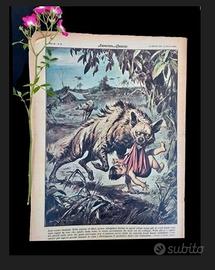 Copertina illustrata (retro): Nella regione di Husi, vicino ad Allahabad (India), oltre venti bambini sono stati rapiti da iene affamate penetrate nei villaggi. Le autorità hanno mobilitato cacciatori esperti per eliminarle. (Disegno W. Molino)