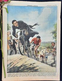 Il prete volante. Tifoso accanito di Bartali, un sacerdote del popolare rione di San Frediano a Firenze, don Danilo Cubattoli, forte pedalatore anche lui, è stato sfidato da un gruppo di giovani comunisti a una gara sul percorso Firenze-San Casciano e ritorno. Il prete ha dato sette minuti di vantaggio agli avversari, ma già al termine della prima parte della gara, tutta in salita, li aveva raggiunti e sorpassati d’autorità. (Disegno di Walter Molino)