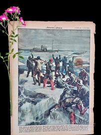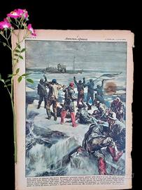 Rivista originale d’epoca La Domenica del Corriere, storico settimanale italiano e giornale illustrato, celebre, diventato famoso e popolare per le sue copertine disegnate e per gli articoli su eventi, personaggi, cronache e curiosità dell’Italia del passato. Questa rivista d’epoca, ricca di fotografie e disegni, rappresenta un pezzo unico della tradizione italiana. Perfetta per chi ama lo stile vintage, le riviste antiche e rare, i ricordi del passato, la cultura italiana, il collezionismo e la storia. Un autentico inserto storico da collezione, ideale anche come regalo originale e unico