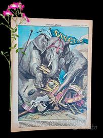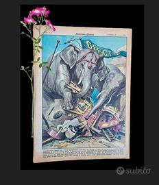 Copertina illustrata (retro): Giganti contro pigmei a Londra: alcuni elefanti di un circo, in preda a follia, distruggono la casa dei coniugi Henri ed Emmie Behrens, due nanerottoli alti insieme 167 cm. I due, dipendenti del circo, chiedono un risarcimento di migliaia di sterline per i danni subiti. (Disegno W. Molino)